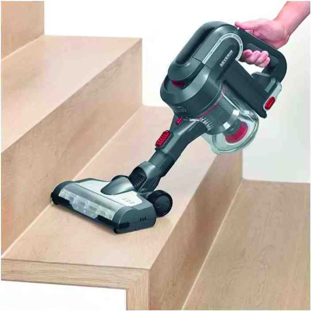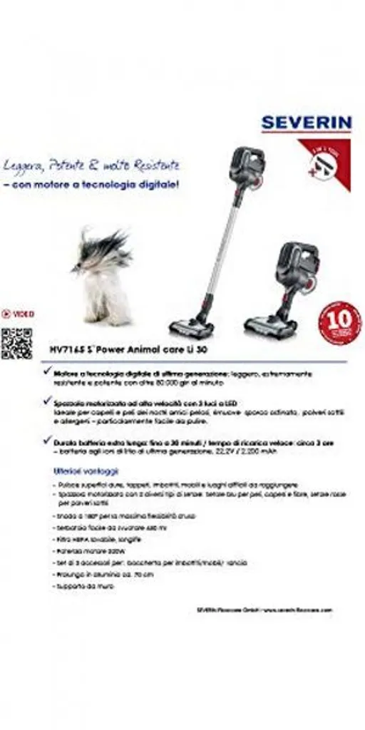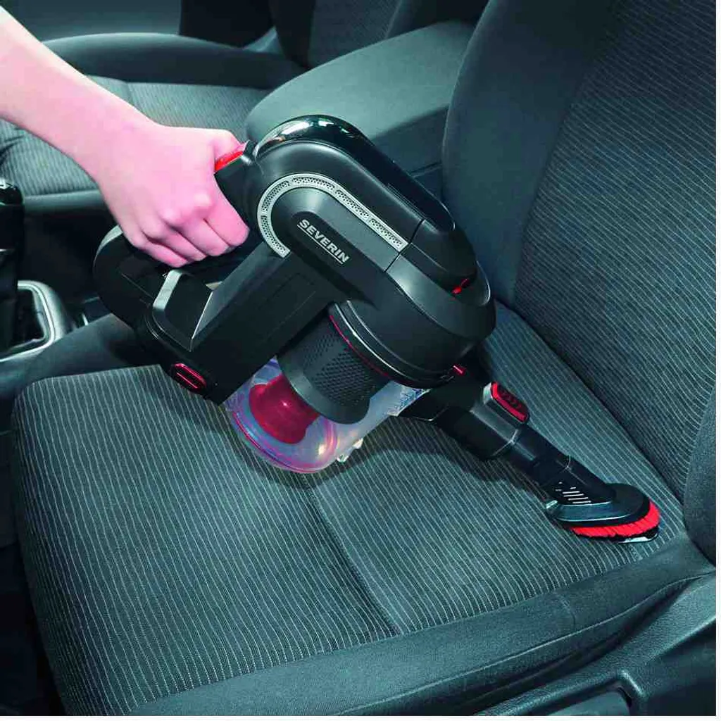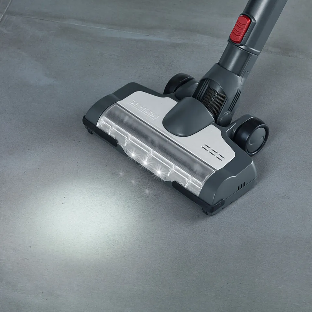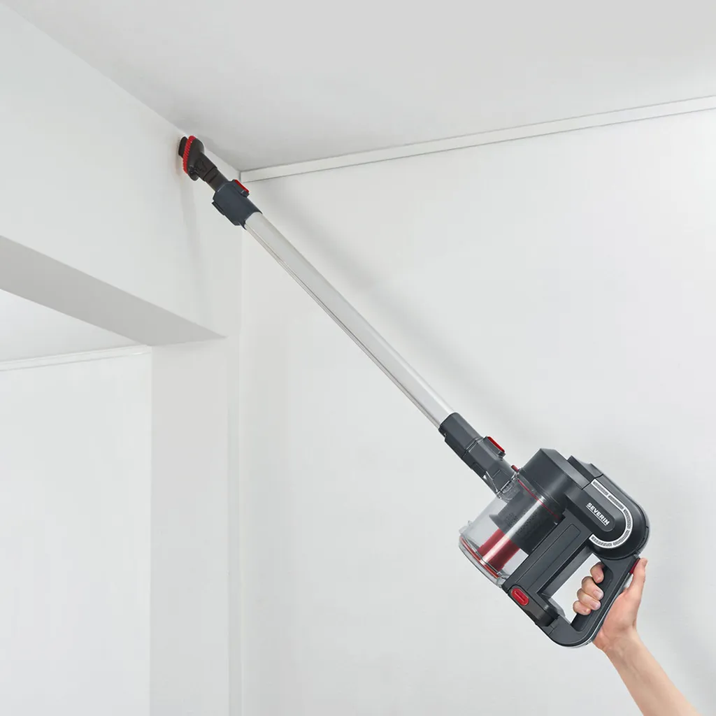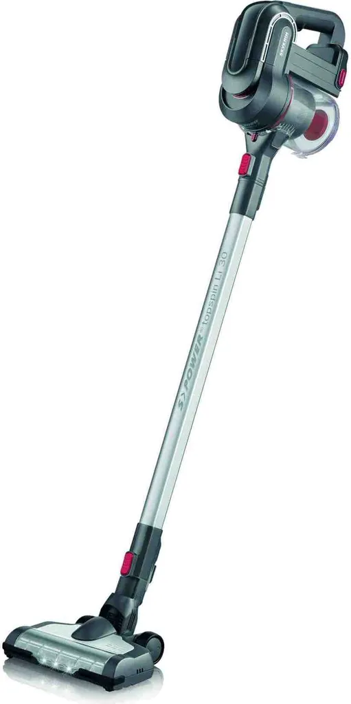 Kabelloser 2-in-1 Hand- und Stielsauger für Hartböden, Teppiche und Polstermöbel, Geeignet für Tierhaare, tiefsitzenden Schmutz und Feinstaub, Ideal für Allergiker dank HEPA Filter, Keine Folgekosten für BeutelSaugstark durch Hochleistungsdigitalmotor (80.000 U/Min.), Lange Laufzeit von 30 Min. durch Li-Ionen Akku, Zuschaltbare High-Speed-Elektrobürste mit Funktionsborsten, Abnehmbares Alu-Saugrohr zur flexiblen Nutzung als HandsaugerBequemes Bedienen ohne Gedrückthalten der EIN-Taste, Bodendüse mit 3 LEDs zum Ausleuchten dunkler Bereiche, Wendig dank 180° DrehgelenkInkl. 3-in-1 Tool aus Polsterdüse, Möbelbürste und Fugendüse für schwer erreichbare Stellen, Einfache Staubbehälterentleerung, Bürstwalze zur Reinigung entnehmbar, Ersatzteile bestellbarLieferumfang: 1 x Severin Hand- und Stielsauger, S´POWER topspin Li 30, Inkl. Polster-/ Möbel-/ Fugendüse, Netzteil, Wandhalterung und Ersatzbürstwalze, Kapazität: 650 ml, Gewicht: 2,3 kg, Farbe: Grau/Rot, HV 7165