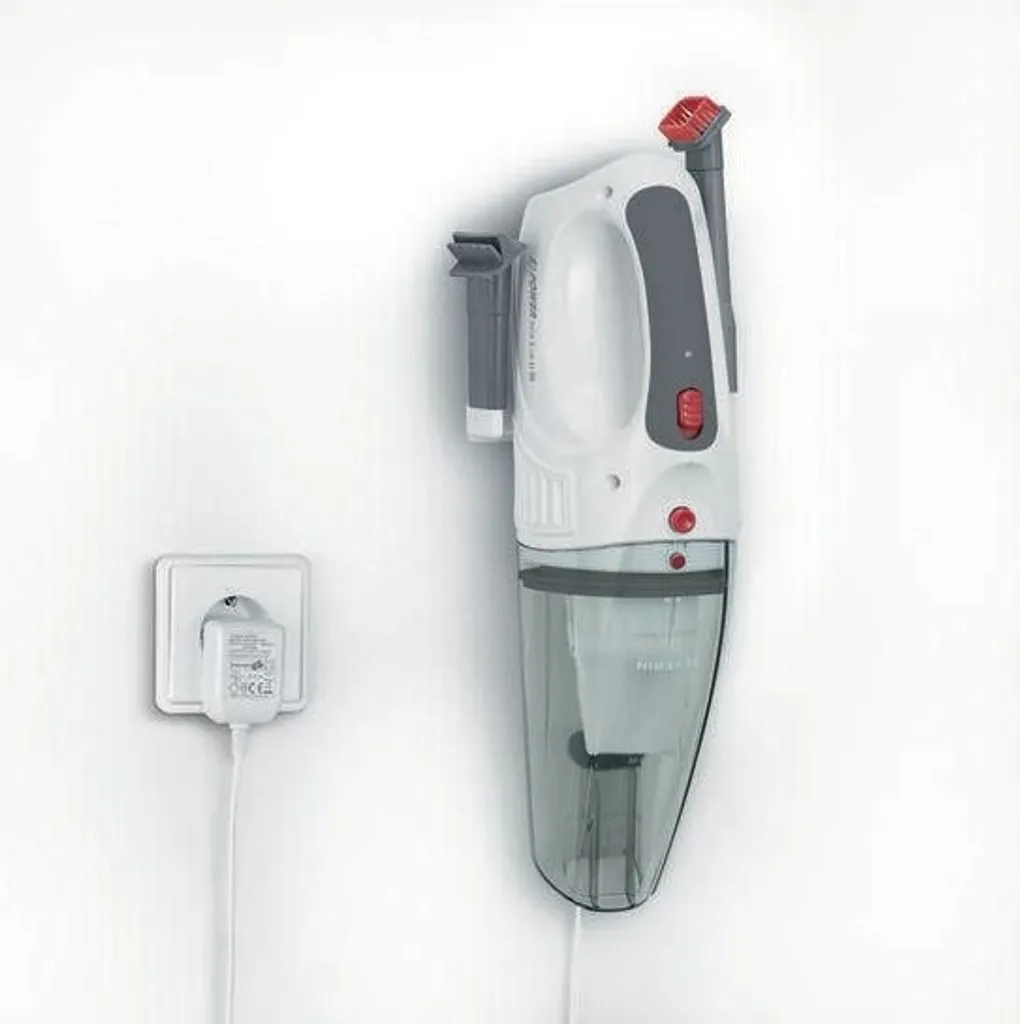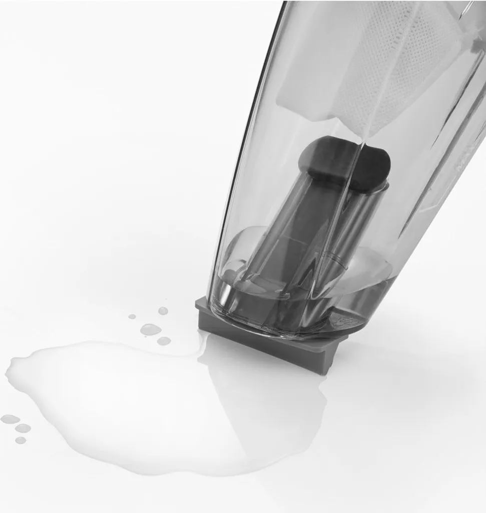3-in-1 Handstaubsauger. Kabellos. Saugt Staub und Flüssigkeiten. Leicht, schnell und flexibel einsetzbar. Gummidüse zum Saugen von Flüssigkeiten. Fugendüse mit zusätzlichem Bürstenaufsatz zur Reinigung schwer erreichbarer Stellen. Einfache Behälterentleerung. Keine zusätzlichen Kosten für Beutel oder Filter. Leicht zu reinigender Permanent-Filter. Überlade- und Tiefentladeschutz. Ladekontrollleuchte.