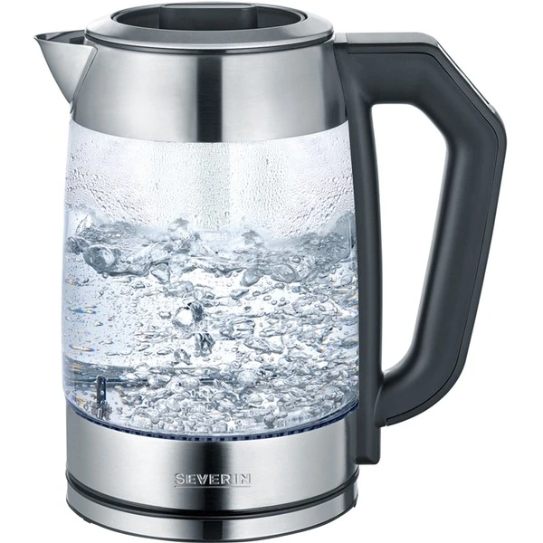 Der Digital Glas Tee- und Wasserkocher WK 3477 von Severin fasst bis zu 1,7 Liter Wasser und hat eine überzeugende Leistung von 2.200 Watt. Er bietet in 5°C-Schritten einstellbare Temperaturstufen von 40°C bis 100°C, und auf dem LCD-Display wird die Temperatur während des Kochens gradgenau angezeigt. Der feinfühlige integrierte Temperatursensor sorgt für höchste Temperaturgenauigkeit. Die „Quick-Boil Funktion“ ermöglicht die Auswahl von 100°C per einfachem Knopfdruck. Eine separate Warmhaltefunktion zur 30 minütigen Temperaturspeicherung hält den Tee schön warm, und der feinmaschige Teefilter aus Edelstahl lässt sich mit dem praktischen Griff sicher entnehmen. Dank dem 360º central-cordless-system ist der Wasserbehälter aus jeder Richtung auf den Gerätesockel aufsetzbar. Mit Dampfstopp-Automatik, Überhitzungsschutz und rutschfesten Gummifüßen ist der WK 3477 auch in Bezug auf Sicherheit eine gute Wahl. Der Wasserbehälter lässt sich dank verdeckter Heizschlange (Abdeckung aus Edelstahl) und abnehmbarem Deckel mit großer Öffnung leicht reinigen, und das Anti-Kalk-Sieb sorgt für sauberes Wasser beim Ausgießen.