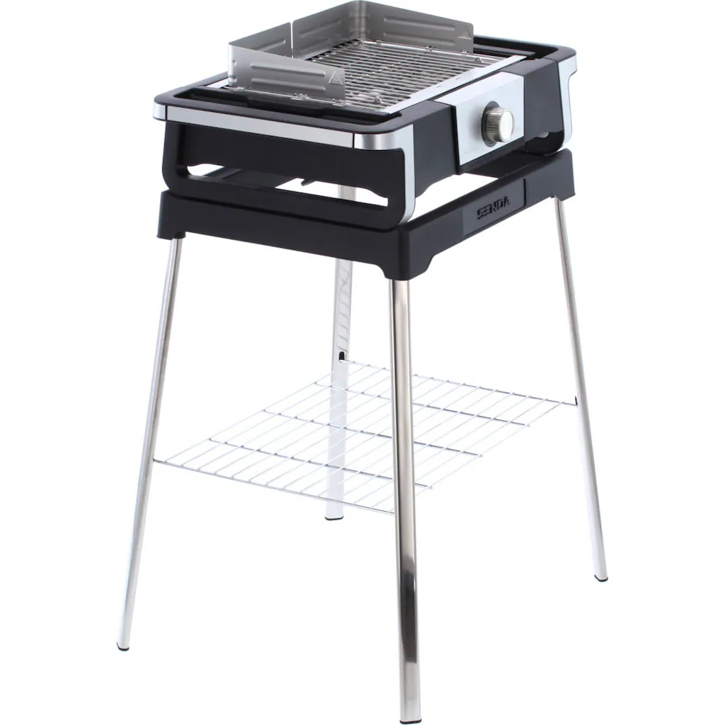 Kompakt, schick und mit 500 °C auch wirklich heiß – so kommt der schwarze SENOA Standgrill mit Edelstahlapplikationen zu Ihnen nach Hause. Ideal für Balkon, Garten oder deine Küche – satte 3.000 Watt sorgen für hohe Temperaturen an allen Orten, wo es eine Steckdose gibt. Die innovative Reflektorschale mit Dachstruktur sorgt für eine gleichmäßige Hitzeverteilung und satten 500 °C am Grillgut. 320 °C hat der Grill bereits durch die äußere Heizzone – schaltet man die BOOST ZONE an, schnellt der Grill auf satte 500 °C. Perfekte Brandings sind damit kein Zufall mehr, sondern garantiert. Das kompakte Gehäuse ist durch die SAFE TOUCH-Oberfläche gesichert und schützt zuverlässig vor Verbrennungen. Die praktischen Griffe sorgen für Komfort und Mobilität. Durch die Verwendung von Wasser wird die Rauchbildung vermieden und die Reinigung erleichtert. Mehr als 1 Liter passen in den Grill. Alle Bestandteile aus Edelstahl können in die Spülmaschine. Der Clou an der SENOA-Baureihe: Alle Geräte sind untereinander kompatibel. Heizungen können nachgekauft und ausgewechselt werden, jeder Stand passt an jedes Gerät – so wird aus dem „BOOST“ im Handumdrehen ein „DIGITAL BOOST“. Dieses Gerät ist der Standgrill – ein Stand ist direkt im Lieferumfang enthalten. Keine Verbrennungsgefahr an allen Oberflächen, dank SafeTouch-Gehäuse, schneller Grillstart: Von 0 auf 500°C in nur 10 Minuten, BoostZone – 500°C für perfekte Brandings. Volle Power durch Doppelheizungstechnologie, stabiles Standuntergestell mit Ablagerost, auch als Tischgrill nutzbar.