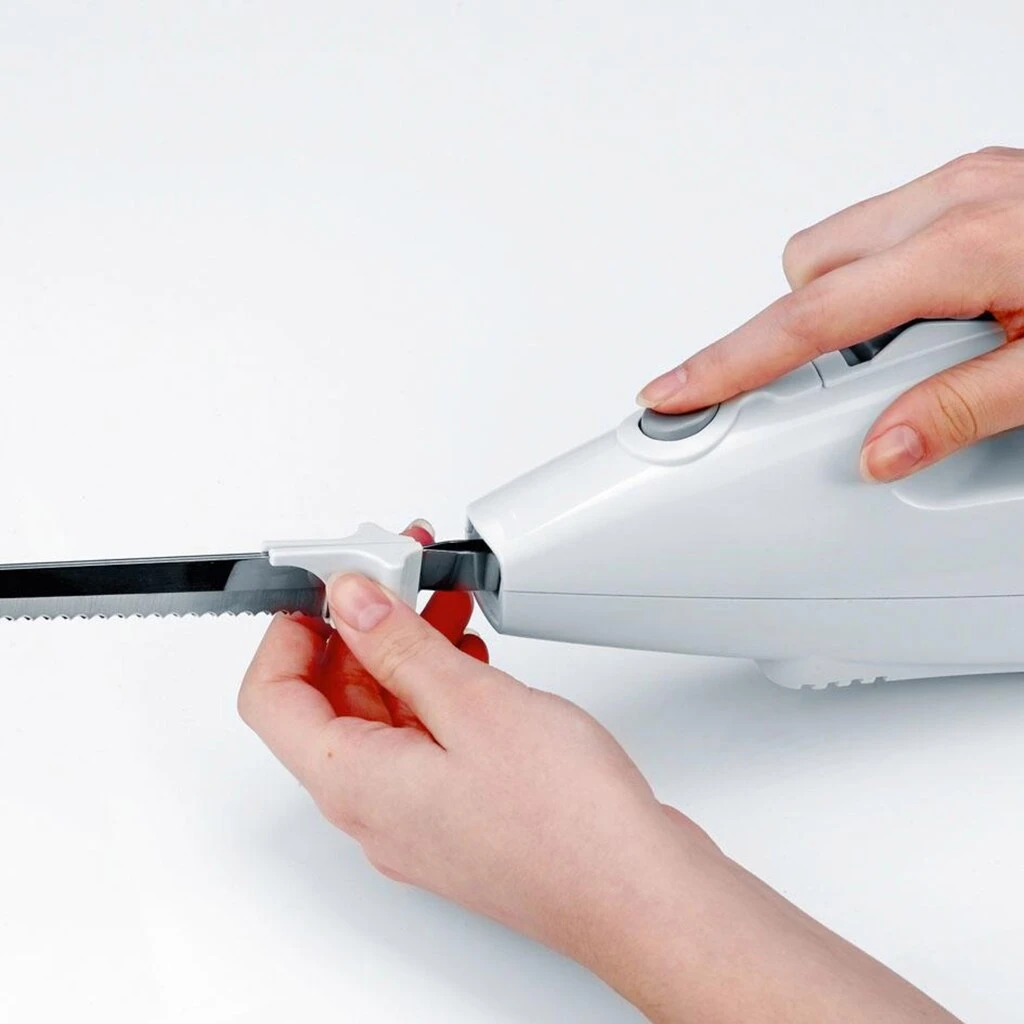 | Weitere Vorteile | gleitet mühelos durch herkömmliches Schneidgut, schneidet sauber und präzise – ohne Rückstände, spülmaschinenfeste Messerklingen vereinfachen die ReinigungFingerschutzMesser-Auslösetaste |