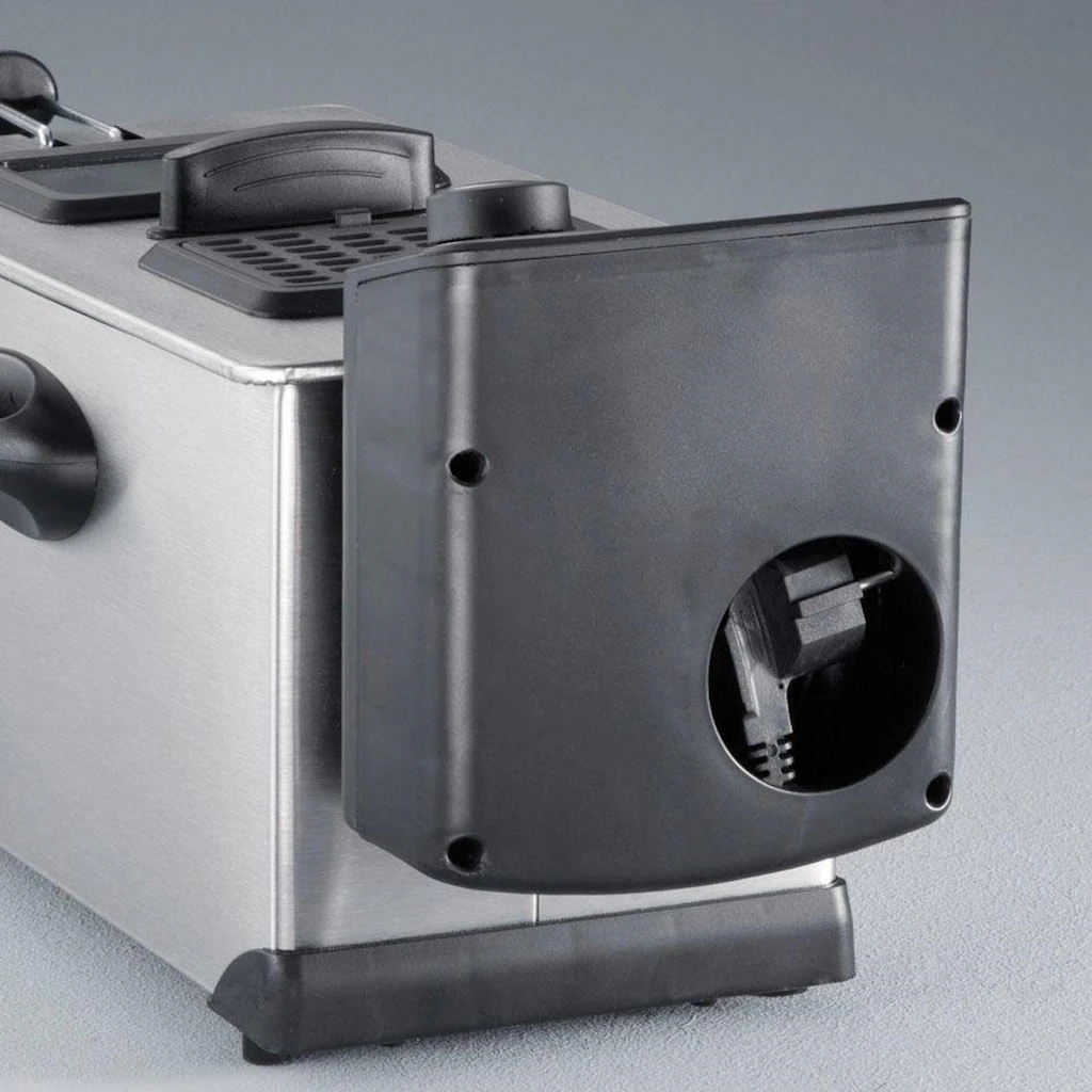 - Einfache Reinigung durch herausnehmbaren, emaillierten Fettbehälter, Frittierkorb und Fettbehälter sind spülmaschinengeeignet