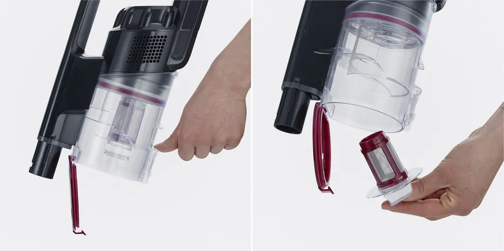 * Einfache und mühelose Entleerung des Staubbehälters auf Knopfdruck