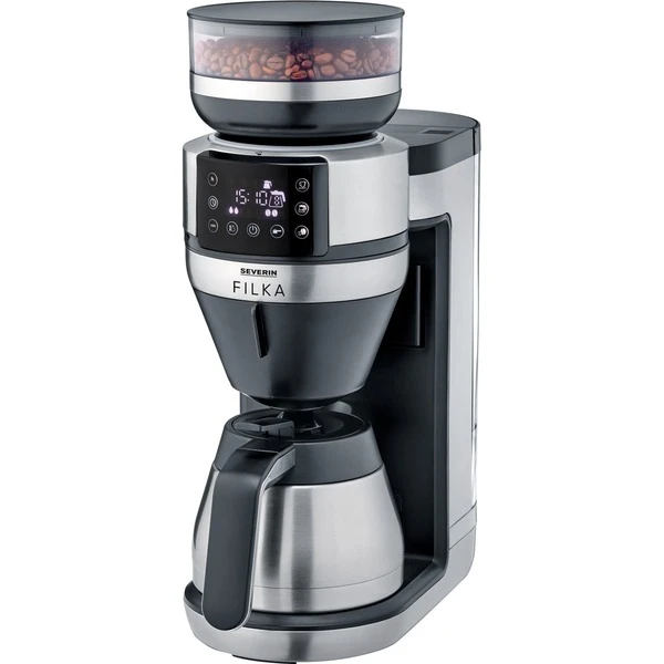 Dank des Severin KA 4851 Filterkaffee-Vollautomat FILKA und vollautomatischem „Cup Control“ ist Tassengenaues Abmessen von Wasser jetzt Vergangenheit. Die FILKA bezieht immer genau so viel Wasser, wie für die gewünschte Menge Kaffee benötigt wird. Der KA 4851 bietet Flexibilität und individuellen Kaffeegenuss. Die FILKA ist vielseitig dank innovativer 5-in-1 Kompatibilität und individuell anpassbarer Tassenabstellfläche: Glaskanne (enthalten), Thermokanne, kleine Tasse, großer Becher oder Thermobecher „To go“. Vollautomatisch einstellbare Kaffeemenge (100 – 350 ml) bei Tassenbezug. Das sorgt für Kaffeegenuss in Premium-Qualität – inklusive nachhaltigem Goldton-Filter. Durch die optimale Brühtemperatur (bis zu 96° C) und Vorbrühfunktion gelingt frisch gemahlener, heißer und kräftiger Kaffee. Der spülmaschinengeeignetem Goldton-Filter dient als Alternative zum klassischen Papierfilter. Die KA 4851 bietet Bedienkomfort auf einem weiteren Niveau: Intuitiv, einfach und hygienisch. Der abnehmbare Wassertank ermöglicht ein komfortables Befüllen und durch den entnehmbaren Bohnenbehälter lässt sich das Mahlwerk unkompliziert reinigen. Auch die Pulverausgabe lässt sich automatisch öffnen und somit leicht reinigen (inklusive Wasserfilter). Dank hochwertigem und platzsparenden Ultra-Slim-Design mit nur 17 cm Breite findet die FILKA überall einen Platz.