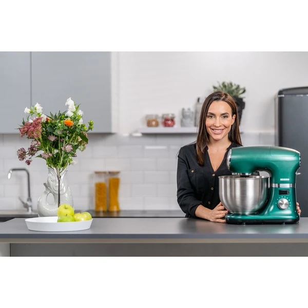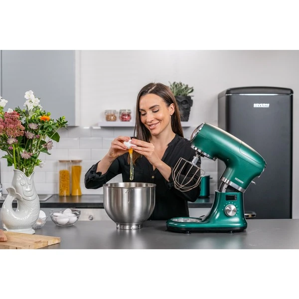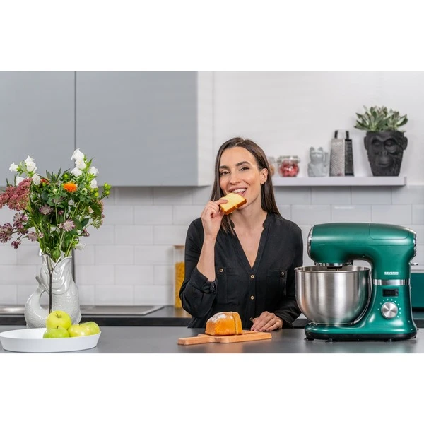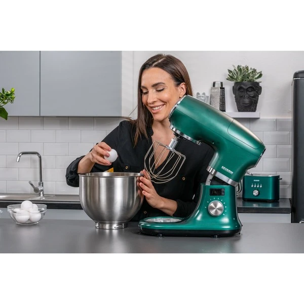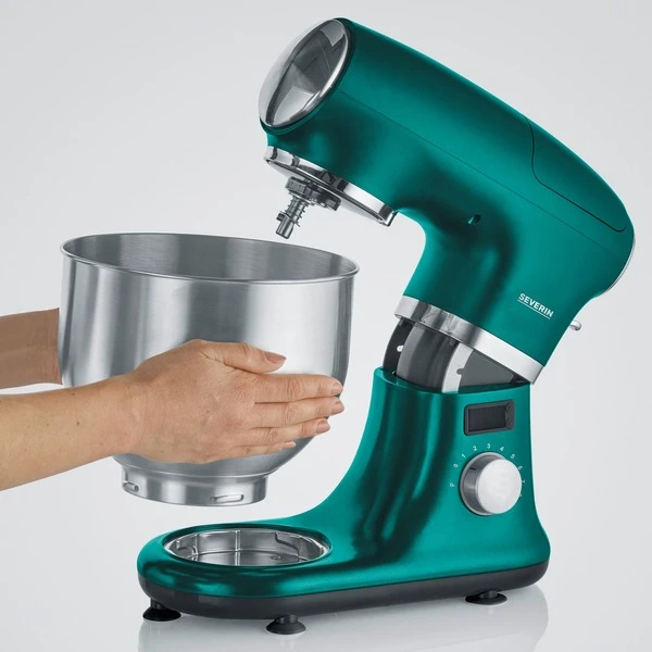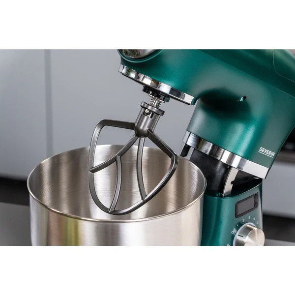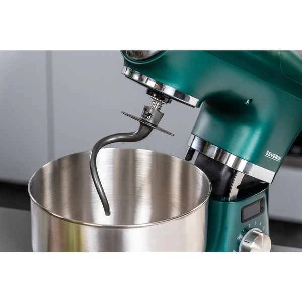 Mit der hochwertigen Küchenmaschine lassen sich Traumgerichte kreieren und ohne anstrengendes Kneten. Die Küchenmaschine von SEVERIN ist mit dem Knethaken, Flachrührer und Schneebesen vielseitig einsetzbar. Durch zwei Display-Modi wird man bei der Zubereitungsdauer unterstützt oder der Prozess automatisch gestoppt. Der zusätzliche Spritzschutz mit Einfüllschütte ermöglicht ein sauberes Arbeiten und erleichtert die Zugabe von Zutaten. Das robuste und hochwertige Design aus Aluminium-Druckguss sorgt für einen sicheren Stand auch bei schweren Massen. Spülmaschinenfeste Teile erleichtern die Reinigung.
