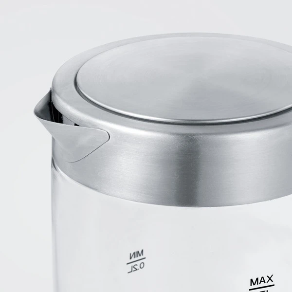 Der kompakte Mini Glas-Wasserkocher integriert sich stilvoll und modern in jede noch so kleine Küchenzeile. Mit 0,5 l Kapazität ist er extrem platzsparend und verhindert unnötiges Verschwenden von Wasser im Alltag. Durch die Einhandbedienung lässt sich der WK 3472 komfortabel bedienen – dank beidseitig bedruckter Wasserstandsanzeige ist er zudem perfekt für Rechts- und Linkshänder geeignet. Die hochwertige Kombination aus Glas und Edelstahl ist nicht nur optisch ein echter Hingucker, sondern sorgt durch die Verwendung von 100% BPA-freien Materialen auch einen unbedenklichen Genuss.