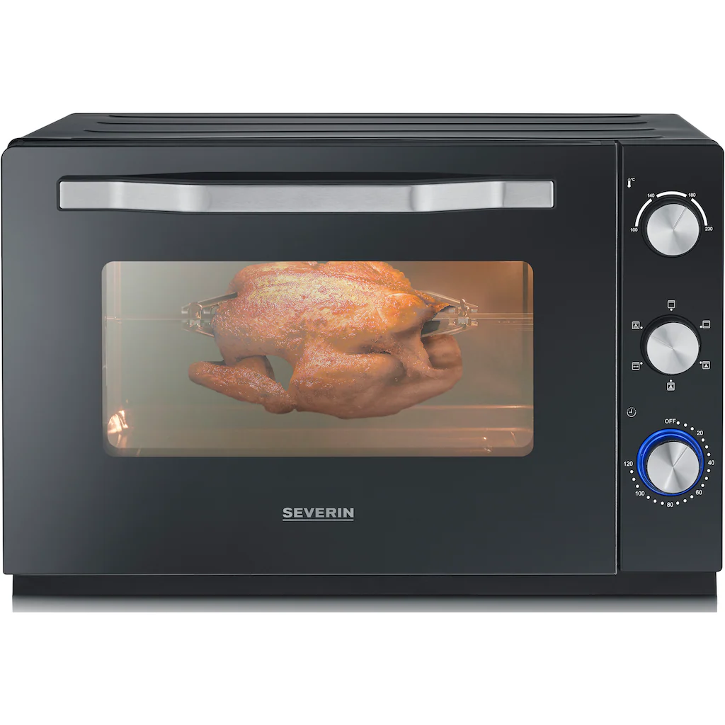 | Weitere Vorteile | Temperatureinstellungen Backofen von 100°C bis 230 °C6-Stufen-Schalter: Oberhitze – Oberhitze und Unterhitze – Oberhitze mit Umluft – Oberhitze und Unterhitze mit Umluft – Oberhitze mit Drehspieß – Oberhitze mit Umluft und Drehspieß4 verschiedene Einschubebeneninkl. Grillrost, ca. 42 cm x 37,5 cm – inkl. Backblech, Innenmaße ca. 38,5 cm x 33,5 cm – inkl. Drehspieß mit Antrieb, L = ca. 37 cm – inkl. Pizzastein, ca. 30,5 cm |