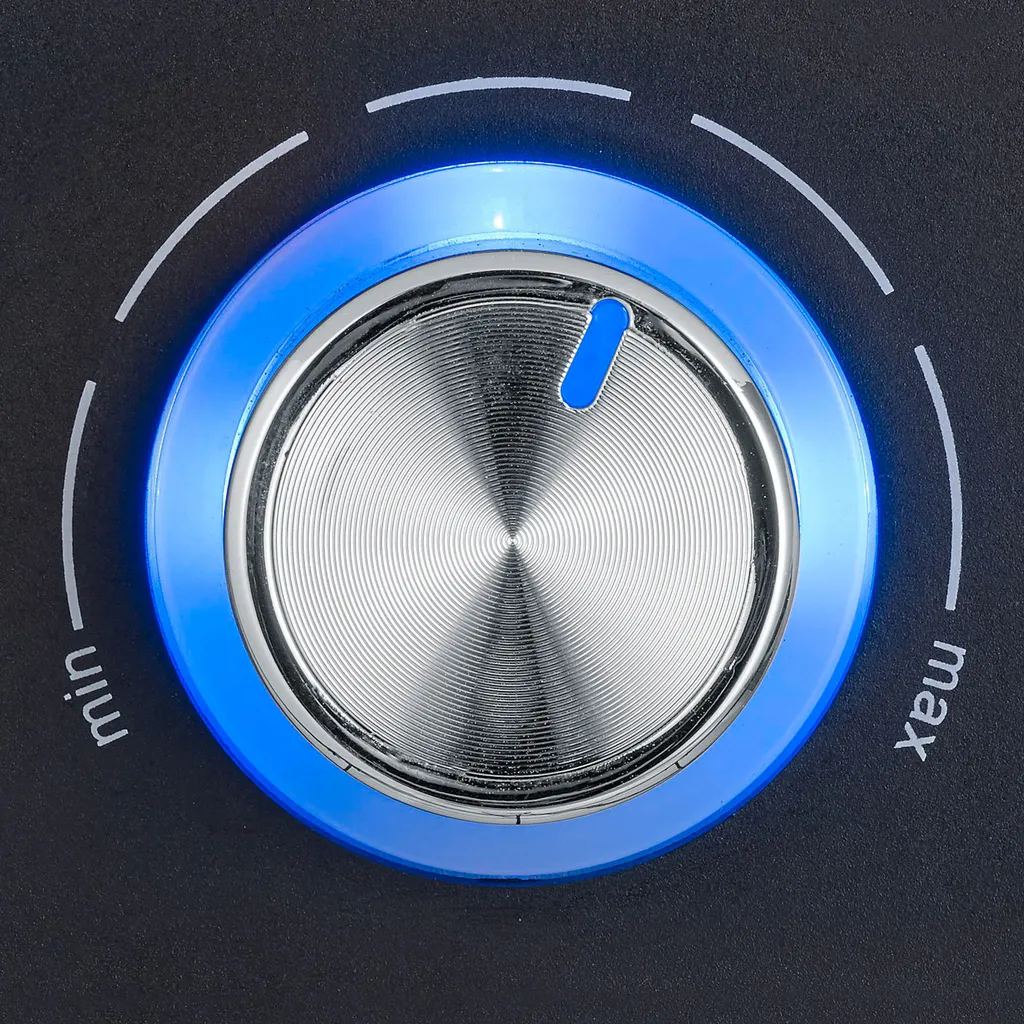 Einfache Bedienung: Temperaturbereich einfach über den Drehregler einstellbar. Die Temperaturkontrolle erfolgt über den LED-Ring zwischen Blau und Rot