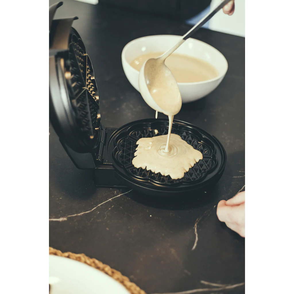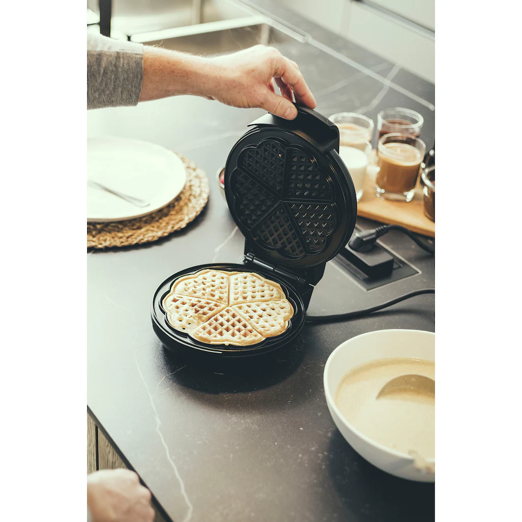 Den Temperaturregler des Waffeleisens können Sie stufenlos je nach gewünschter Bräunung einstellen. Eine zweifarbige elektronische Backampel signalisiert Ihnen, wenn die Waffeln außen knusprig und innen noch saftig sind. Die Antihaft-Beschichtung erleichtert die Reinigung.