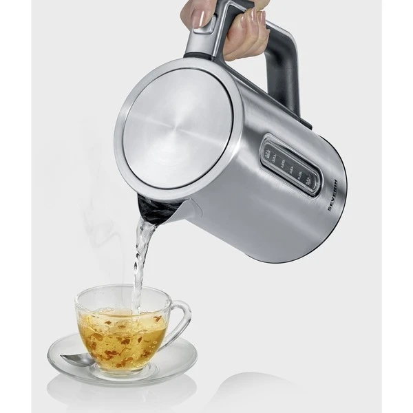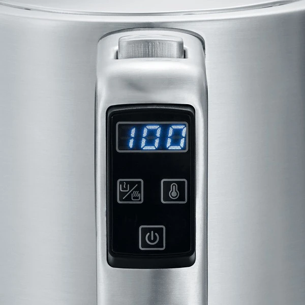 Der digitale Wasserkocher WK 3418 überzeugt mit einer Kapazität von 1,7 Litern hat eine Leistung von 3000 Watt. Das moderne Design des Wasserkochers mit 1,7 l XXL-Füllvolumen ist robust und funktional. Das hochwertige Gehäuse aus Edelstahl und BPA-freien Kunststoffteilen sorgt für für gesundheitlich unbedenklichen Genuss. Mit einer Leistung von 3000 Watt wird das Wasser in Sekundenschnelle erhitzt. Für Komfort sorgen die individuelle Temperaturauswahl zwischen 40° und 100°C und die Warmhaltefunktion. Darüber verfügt der Wasserkocher über einen komfortabel gestaltetem Griff und ist, dank beidseitig rot-/blau beleuchteter Wasserstandanzeigen, für Rechts- und Linkshänder gleichermaßen komfortabel mit nur einer Hand zu bedienen. Für einen sicheren Gebrauch sorgen der wärmeisolierende Kunststoffgriff, eine Abschaltautomatik, Überhitzungs- und Trockenlaufschutz sowie rutschfeste Gummifüße. Dank Deckel mit XXL-Öffnung, Edelstahlboden und verdecktem Heizelement lässt sich der WK 3418 leicht reinigen.