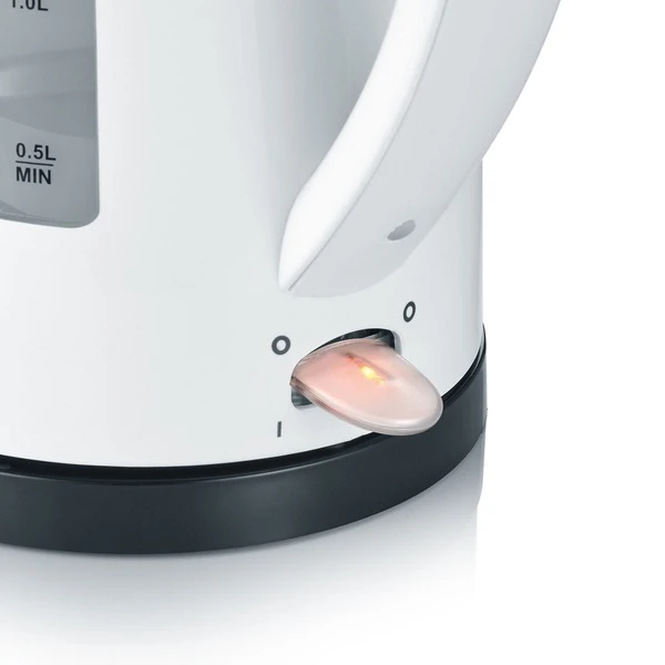 Der Wasserkocher WK 3494 von Severin fasst bis zu 1,5 Liter Wasser und hat eine überzeugende Leistung von 2.200 Watt. Dank dem 360º central-cordless-system ist der Wasserbehälter aus jeder Richtung auf den Gerätesockel aufsetzbar. Die beidseitige Wasserstandsanzeige dient dem bequemen Ablesen des Füllstandes und ermöglicht eine komfortable EInhandbedienung. Mit integrierter Dampfstopp-Automatik, Überhitzungsschutz, wärmeisoliertem Kunststoffgriff und rutschfesten Gummifüßen ist der Wasserkocher WK 3494 auch in Bezug auf Sicherheit eine gute Wahl. Der Wasserbehälter lässt sich dank verdeckter Heizschlange (Abdeckung aus Edelstahl) und klappbarem Deckel mit großer Öffnung leicht reinigen, und das integrierte Sieb sorgt für sauberes Wasser beim Ausgießen.